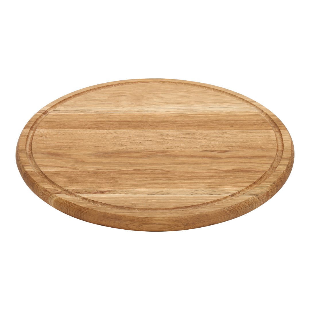 Rundt skærebræt i egetræ med saftrille - 40 cm